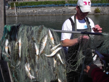 Ab 20 Personen kommt der Fischer vor Ort und bäckt feine Fischchnusperli